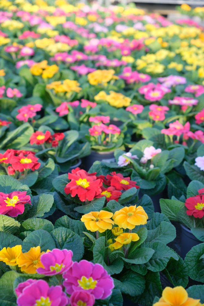 - Frühjahr: Stiefmütterchen, Primeln und weitere Frühjahrsblüher.